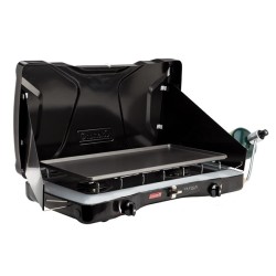 This Perfectflow Triton Series 2 Burner Propane Stove from Coleman has 22,000 total BTU output with two high-performance, fully adjustable Perfectflow Band-a-Blu burners.